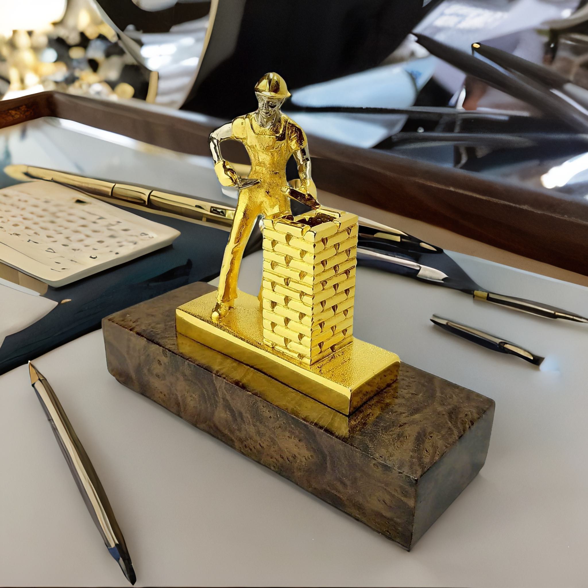 Ïîäñòàâêà ïîä ðó÷êó "Ñòðîèòåëü" ïðåäñòàâëÿåò ñîáîé íå ïðîñòî óòèëèòàðíûé ïðåäìåò, íî è íàñòîÿùåå ïðîèçâåäåíèå èñêóññòâà. Îñíîâàíèå èç äîëåðèòà ñëóæèò ôîíîì äëÿ ôèãóðêè ñòðîèòåëÿ ñ ìàñòåðêîì, çàíÿòîãî êëàäêîé êèðïè÷åé. Ïîçîëî÷åííûå ýëåìåíòû äîáàâëÿþò ýëåãàíòíîñòè è âûðàçèòåëüíîñòè. Ýòà ïîäñòàâêà ìîæåò ñòàòü îòëè÷íûì ïîäàðêîì äëÿ ñòðîèòåëåé, àðõèòåêòîðîâ èëè ëþáèòåëåé íåîáû÷íîãî äèçàéíà. |