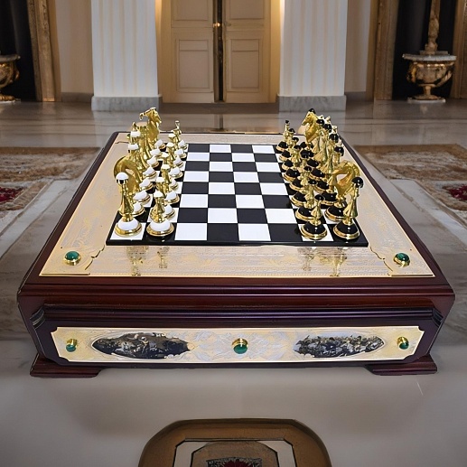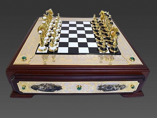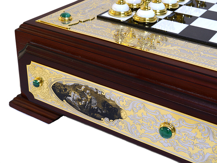 Ýòè ðîñêîøíûå øàõìàòû èç ìðàìîðà è äîëåðèòà "Áàòàëèÿ" èç Çëàòîóñòà – èäåàëüíûé ïîäàðîê äëÿ ëþáèòåëåé ýòîé âåëèêîé èãðû.  ôîðìå ëàðöà, óêðàøåííîãî ãðàâþðàìè ñî ñöåíàìè ñðàæåíèé, ýòîò íàáîð øàõìàò òàêæå áóäåò çàìå÷àòåëüíûì äîïîëíåíèåì ê èíòåðüåðó. Óíèêàëüíîñòü ýòîãî ïîäàðêà â åãî äåòàëèçàöèè è ýëåãàíòíîñòè. Ýòîò íàáîð áóäåò ïðåêðàñíûì ïîäàðêîì äëÿ øàõìàòèñòà, ôàíàòà èñòîðèè èëè ïðîñòî ÷åëîâåêà, êîòîðûé öåíèò èçûñêàííûå âåùè. Äàéòå ñâîèì áëèçêèì âîçìîæíîñòü íàñëàäèòüñÿ âåëè÷èåì ýòîé èãðû ñ øàõìàòàìè, êîòîðûå ïðåâðàùàþò êàæäóþ ïàðòèþ â èñòîðè÷åñêóþ áàòàëèþ. |