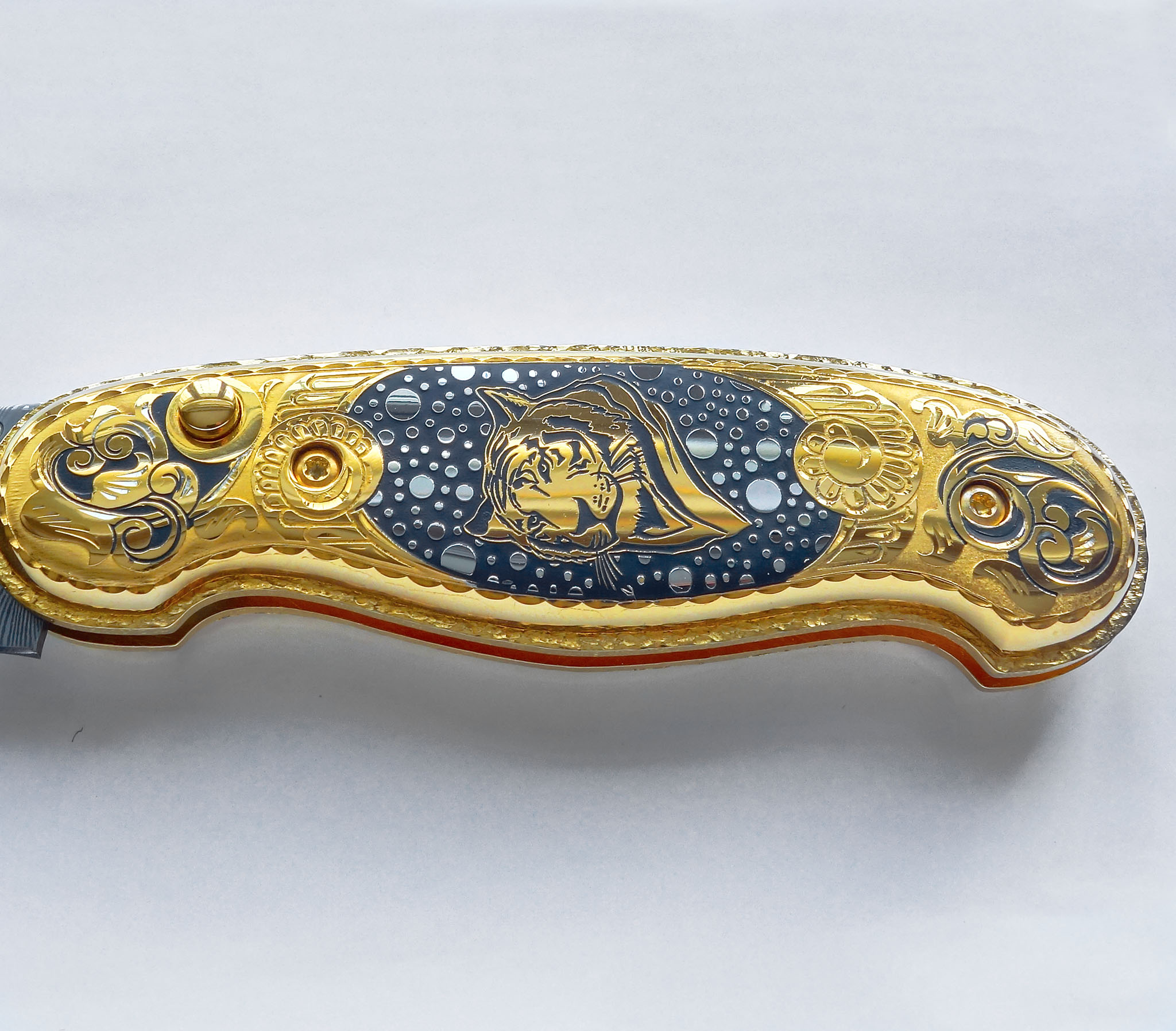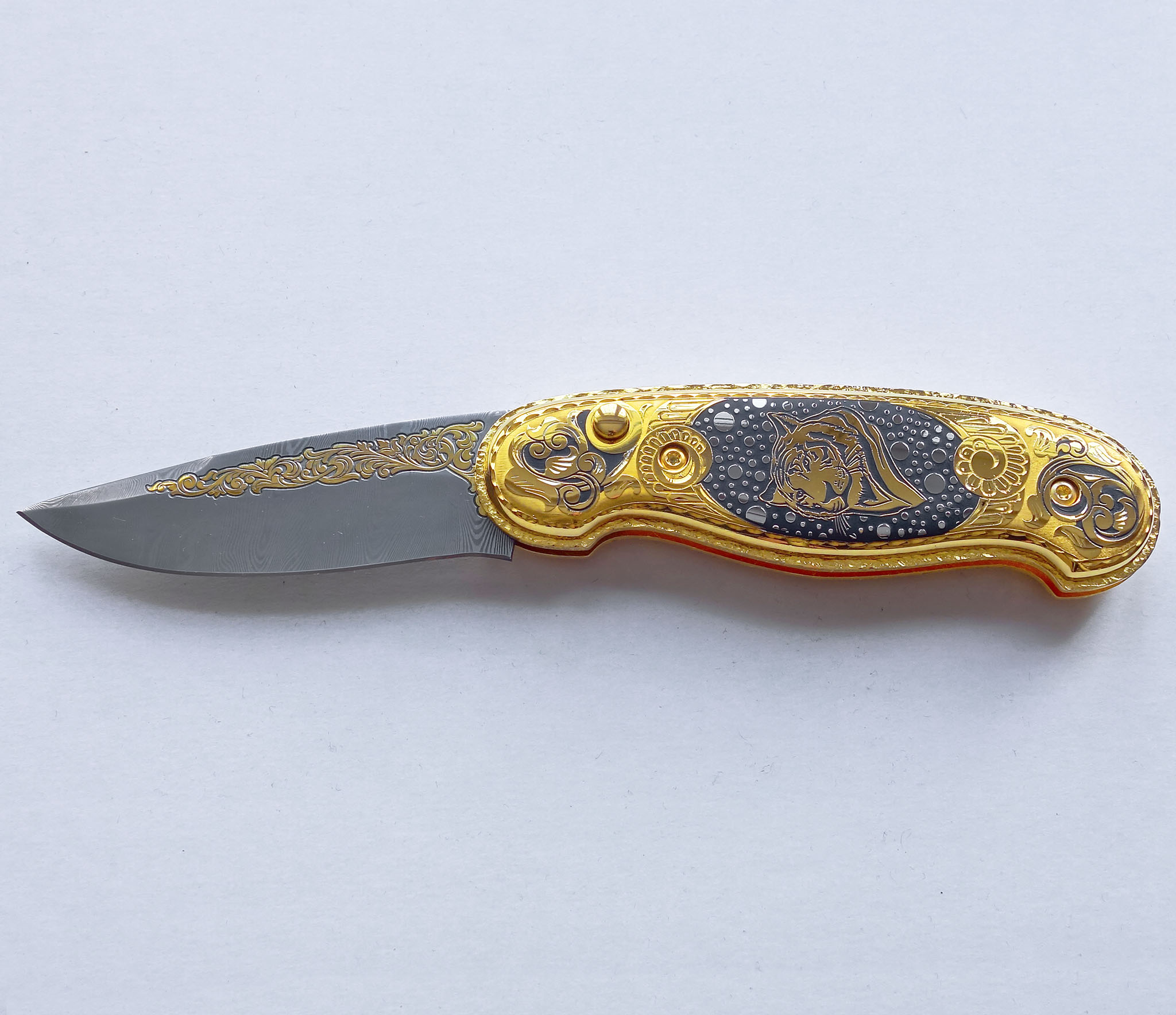 Ñêëàäíîé íîæ "Tiger". Äàìàñê. Çëàòîóñò