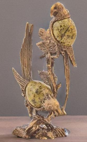 Âàñ ïðèâëåêàåò èçûñêàííàÿ ðåçíàÿ ðàáîòà è óíèêàëüíûå äåêîðàòèâíûå ýëåìåíòû? Òîãäà âàì îáÿçàòåëüíî ñòîèò îöåíèòü íàøó íîâóþ ïîòðÿñàþùóþ áðîíçîâóþ ñêóëüïòóðó Ïîïóãàè íà âåòêå. Ýòîò íåïîâòîðèìûé øåäåâð ëèòüÿ âûïîëíåí èç ÷èñòîé áðîíçû. Òåëî ïîïóãàåâ ïðåäñòàâëÿåò ñîáîé øàð, âûïîëíåííûé èç çìååâèêà, ÷òî äîáàâëÿåò ôèãóðêå îñîáóþ ïðåëåñòü è ìàãèþ. Èíòåðåñíàÿ äåòàëèçàöèÿ è òîíêàÿ ðàáîòà ñîçäàþò îùóùåíèå, ÷òî ïîïóãàè ãîòîâû â ëþáîé ìîìåíò âçëåòåòü ïðî÷ü.