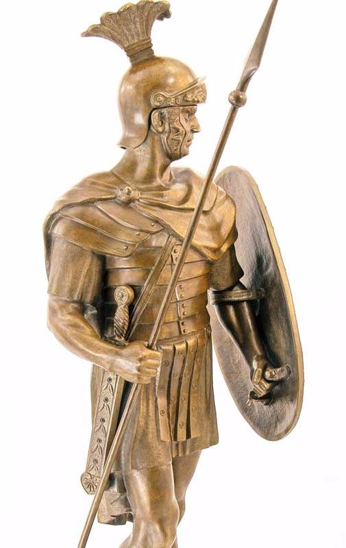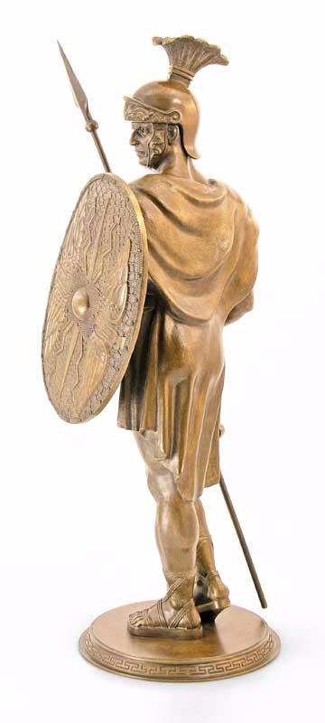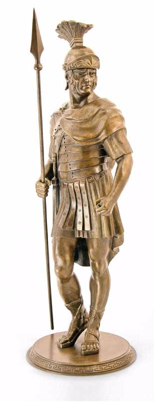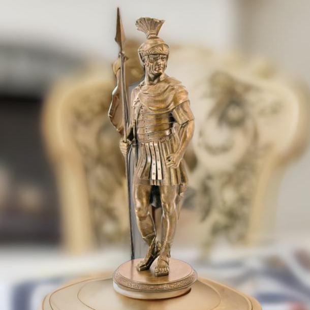 Äàííàÿ ñêóëüïòóðà ïðåäñòàâëÿåò ñîáîé ìàñòåðñêè âûïîëíåííîå èçîáðàæåíèå àíòè÷íîãî âîèíà, ãîòîâîãî âñòóïèòü â áîé.  åãî ðóêàõ êîïüå è ùèò, ñèìâîëû ìóæåñòâà è çàùèòû â äðåâíèõ âðåìåíàõ. Êàæäàÿ äåòàëü, îò êàñêè äî äîñïåõîâ, âûïîëíåíà ñ ïîðàçèòåëüíîé òî÷íîñòüþ, ÷òî ïîçâîëÿåò â ïîëíîé ìåðå îùóòèòü äóõ ïðîøëûõ âåêîâ. Íà ïîäñòàâêå èç áðîíçû âîèí ñòîèò óâåðåííî, ãîòîâûé îòðàçèòü ëþáóþ àòàêó. Ýòà ñòàòóýòêà áóäåò îòëè÷íûì äîïîëíåíèåì ê êîëëåêöèè àíòèêâàðèàòà èëè ïðîñòî óêðàøåíèåì âàøåãî èíòåðüåðà, ïåðåäàþùèì àòìîñôåðó äðåâíåé èñòîðèè è âåëèêèõ âîèíîâ. |