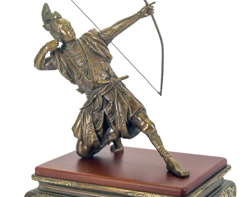 Ýòà çàâîðàæèâàþùàÿ ñêóëüïòóðà «Âîèí ñ ëóêîì» ïîðàæàåò ñâîåé äåòàëèçàöèåé è òî÷íîñòüþ âûïîëíåíèÿ. Èçîáðàæåííûé âîñòî÷íûé âîèí, ãîòîâûé âûïóñòèòü ñòðåëó èç ñâîåãî íàïðÿæåííîãî ëóêà, îëèöåòâîðÿåò ìàñòåðñòâî è ëîâêîñòü ñòðåëüöîâ äðåâíîñòè. Áðîíçîâàÿ ôèãóðêà âîèíà äåìîíñòðèðóåò óìåíèå ìàñòåðà â ïåðåäà÷å äåòàëåé è íàñòðîåíèé. Ïîäñòàâêà èç áëàãîðîäíîé ÿøìû äîáàâëÿåò âåñ è ñòàòóñíîñòü ýòîìó ïðîèçâåäåíèþ èñêóññòâà. Òàêàÿ ñêóëüïòóðà áóäåò èäåàëüíûì äîïîëíåíèåì ê èíòåðüåðó êàáèíåòà èëè ãîñòèíîé, à òàêæå ñòàíåò ïðåêðàñíûì ïîäàðêîì äëÿ èñòîðèêîâ, êîëëåêöèîíåðîâ è âñåõ, êòî öåíèò èñêóññòâî. |