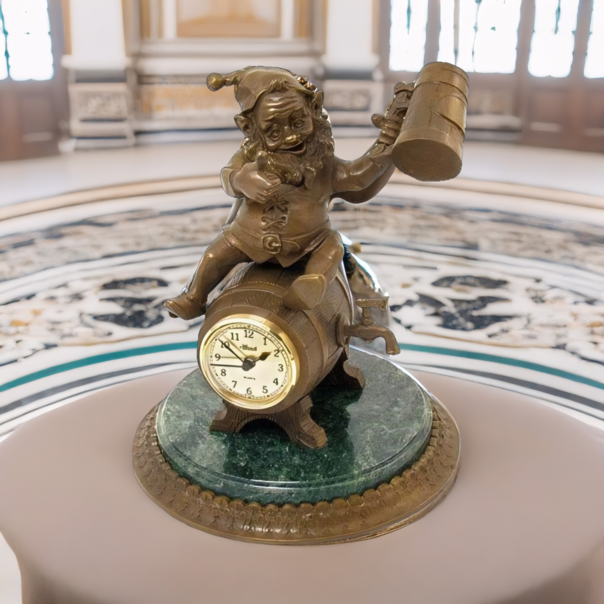 Âàì íàäîåëè îáû÷íûå ïîäàðêè? Õîòèòå óäèâèòü è ïîðàäîâàòü áëèçêèõ íåîáû÷íûì ñþðïðèçîì? Ìû ïðåäëàãàåì âàøåìó âíèìàíèþ ÷àñû íàñòîëüíûå, âûïîëíåííûå èç áðîíçû â âèäå ñèìïàòè÷íîãî ãíîìà ñ êðóæêîé ïèâà íà ïèâíîé áî÷êå.