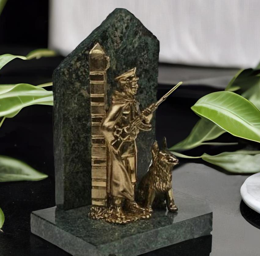 Âíèìàíèþ êîëëåêöèîíåðîâ è öåíèòåëåé èñêóññòâà ïðåäëàãàåòñÿ ïîòðÿñàþùàÿ áðîíçîâàÿ ñòàòóýòêà «Íà ñëóæáå». Ýòî íàñëàæäåíèå äëÿ ãëàç è ãîðäîñòü äëÿ âàøåé êîëëåêöèè. Ýòîò øåäåâð èñêóññòâà ïðåäñòàâëÿåò ïîãðàíè÷íèêà â ïîëíîì îáìóíäèðîâàíèè, áäèòåëüíî ñòîÿùåãî ñî ñâîåé ïðåäàííîé ñîáàêîé. Ñêóëüïòóðà óñòàíàâëèâàåòñÿ íà êðåïêîå îñíîâàíèå èç çìååâèêà, ÷òî ïðèäàåò ðàáîòå äîïîëíèòåëüíóþ òÿæåñòü è çíà÷èìîñòü.