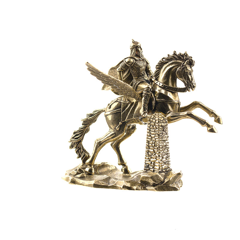 Ñîñðóêî, îí æå Ñîñëàí, ãåðîé äðåâíèõ íàðòñêèõ ñêàçàíèé, íåïîáåäèìûé, ïðåâðàòèâøèé ñâîå òåëî â áóëàò âîçâûøàåòñÿ íà êðûëàòîì êîíå íàä ñòîðîæåâîé áàøíåé. Ïîòðÿñàþùåé êðàñîòû êîìïîçèöèÿ îëèöåòâîðÿåò ìóæåñòâî è íåâåðîÿòíóþ ñèëó äóõà. Ïðåêðàñíûé ïîäàðîê ðóêîâîäèòåëþ è ëè÷íîñòÿì ñ ñèëüíûì õàðàêòåðîì. |