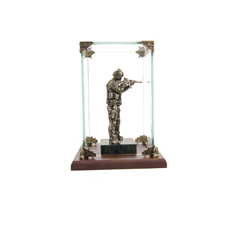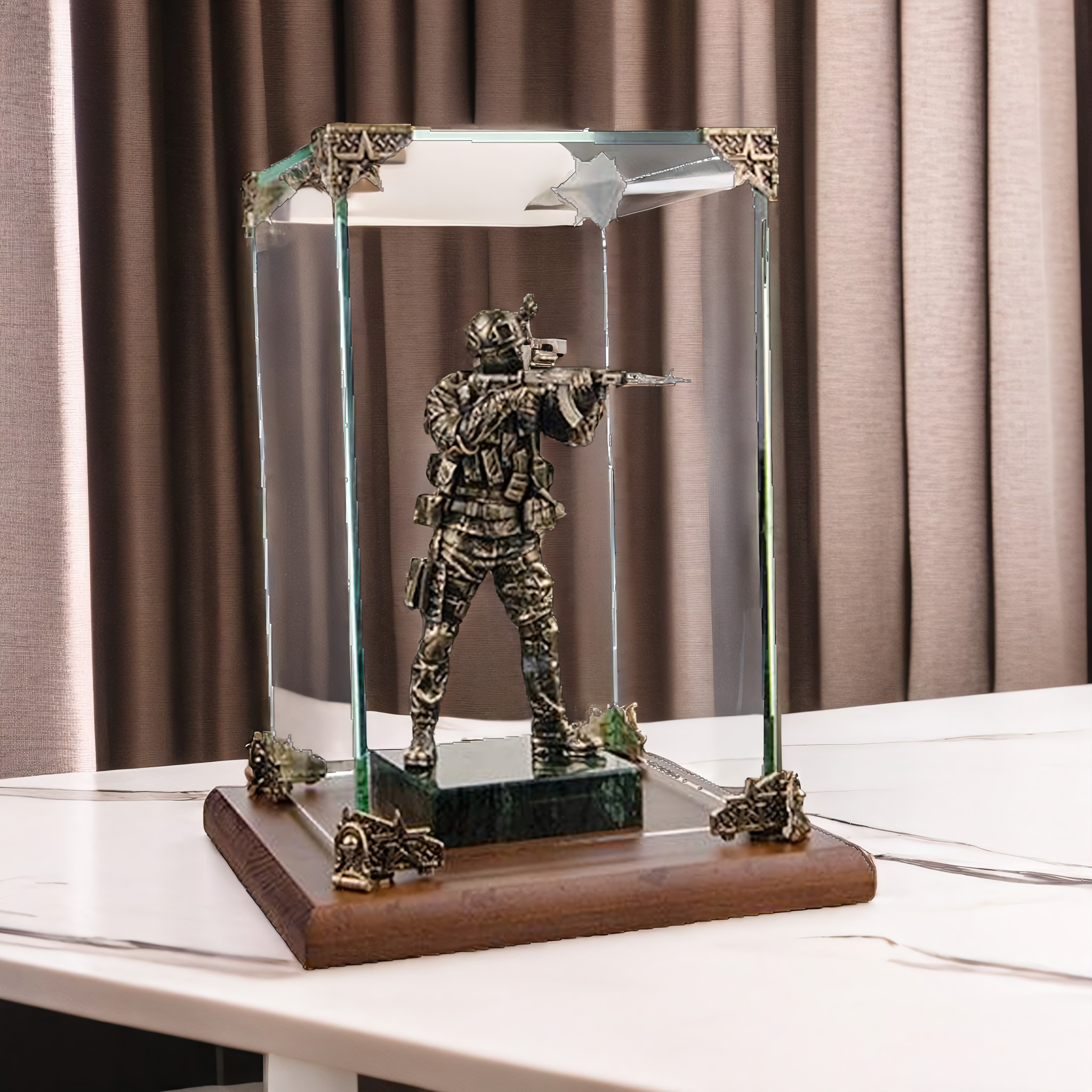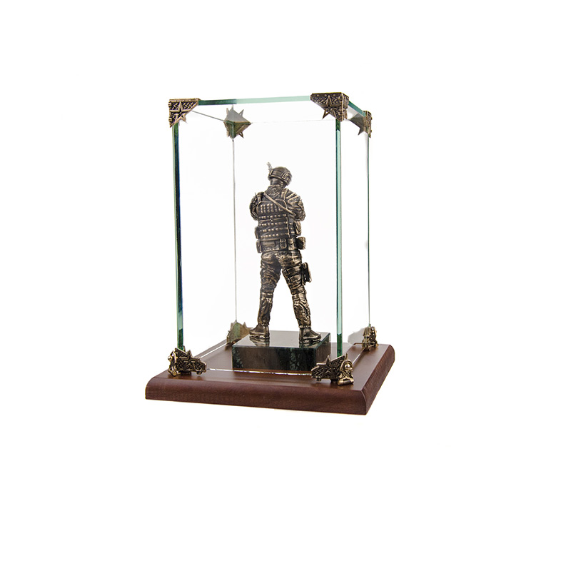 Áðîíçîâàÿ ñòàòóýòêà "Ñïåöíàçîâåö íà êàìíå" â ñòåêëÿííîé êîðîáêå