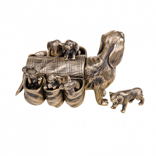 Óâàæàåìûå êîëëåêöèîíåðû èçÿùíûõ ýëåìåíòîâ äåêîðà è ëþáèòåëè óþòíîãî äîìàøíåãî èíòåðüåðà, ìû ïðåäñòàâëÿåì âàøåìó âíèìàíèþ ýêñêëþçèâíóþ, âûñîêî õóäîæåñòâåííóþ áðîíçîâóþ ñòàòóýòêó Òàêñà ñ ùåíÿòàìè. Ýòî íå ïðîñòî ïðåäìåò óêðàøåíèÿ, ýòî ïðîèçâåäåíèå èñêóññòâà. Èç ìàëåéøèõ äåòàëåé ñî âêóñîì è ëþáîâüþ âîññîçäàíà ðåàëèñòè÷íàÿ ñöåíà ñîáà÷üåãî ñ÷àñòüÿ. Ãëàâíûé ãåðîé — ìèëàÿ òàêñà â îäåæäå, ñòèëüíîé è îðèãèíàëüíîé, èç êàðìàíîâ êîòîðîé ðàäîñòíî âûëàçÿò åå çàáàâíûå ùåíÿòà.