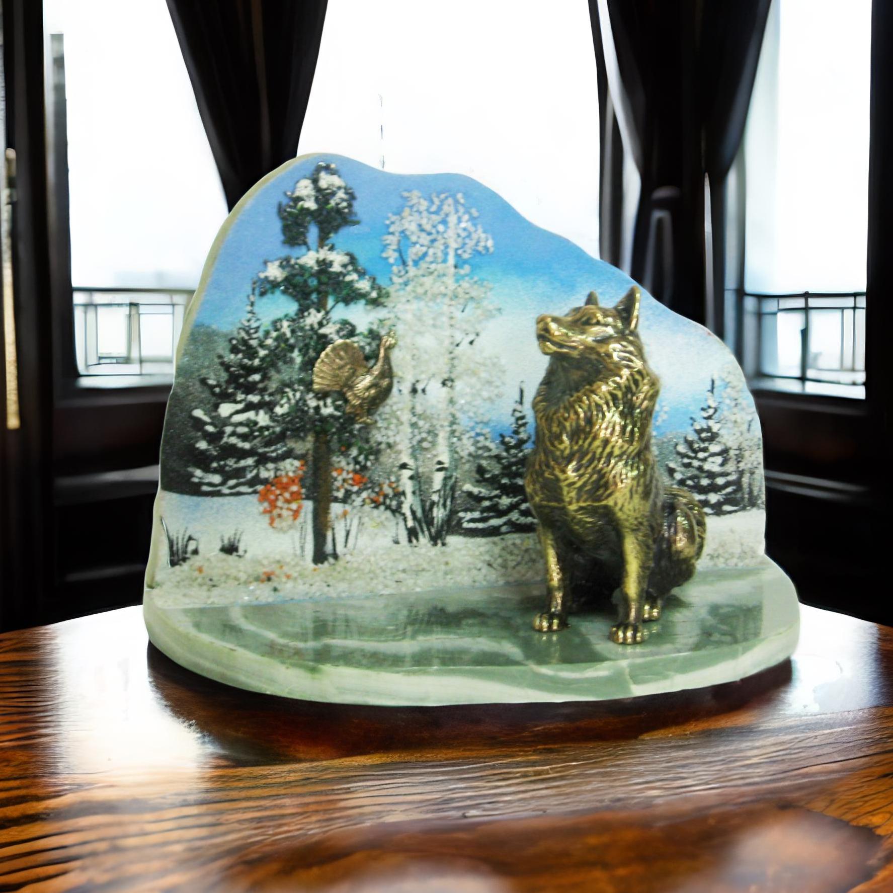 Ïðåäñòàâëÿåì âàøåìó âíèìàíèþ èçûñêàííûé áðîíçîâûé ñóâåíèð Íà îõîòå — ñòàòóýòêó ñîáàêè íà ôîíå çèìíåãî ëåñà âûïîëíåííóþ èç âûñîêîêà÷åñòâåííîãî áðîíçîâîãî ñïëàâà. Îñíîâàíèå ñóâåíèðà — ïîäñòàâêà èç íàòóðàëüíîãî ìðàìîðà, ÷òî ïðèäàåò èçäåëèþ îñîáîé ïðî÷íîñòè è ñòàáèëüíîñòè, à òàêæå ýëåãàíòíîñòè è àðèñòîêðàòè÷íîñòè. Ýòîò ñóâåíèð áóäåò íåïîäðàæàåìûì ïîäàðêîì äëÿ ëþáèòåëåé îõîòû, äà÷íèêîâ, êîëëåêöèîíåðîâ è ïðîñòî öåíèòåëåé ýñòåòè÷åñêè ïðèâëåêàòåëüíûõ ïðåäìåòîâ èíòåðüåðà. Íåïîâòîðèìàÿ áðîíçîâàÿ ñòàòóýòêà ñîáàêè íà ôîíå çèìíåãî ëåñà äîáàâèò âàøåìó äîìó òåïëîòû è óþòà.