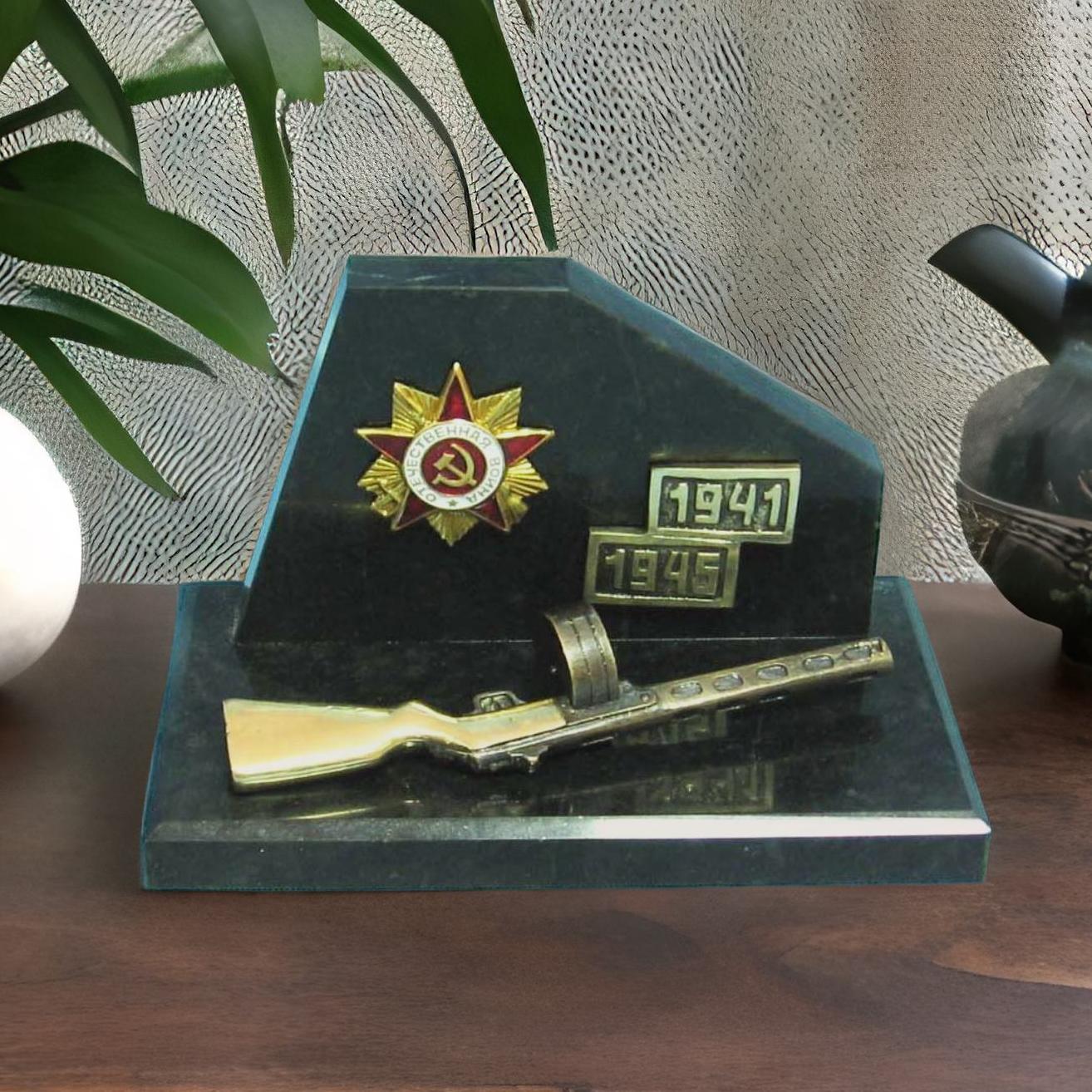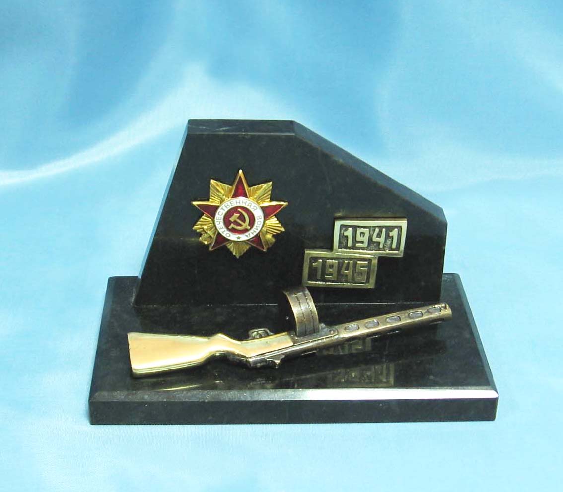 Ñèìâîëû îòå÷åñòâåííîé âîéíû è ñîâåòñêîãî ïóëåìåòà âûïîëíåíû èç áðîíçû ñ òàêèì âûñîêèì êà÷åñòâîì, ÷òî ñîçäàåòñÿ âïå÷àòëåíèå, áóäòî âû äåðæèòå íàñòîÿùèé ìóçåéíûé ýêñïîíàò ïðÿìî ó ñåáÿ äîìà. |