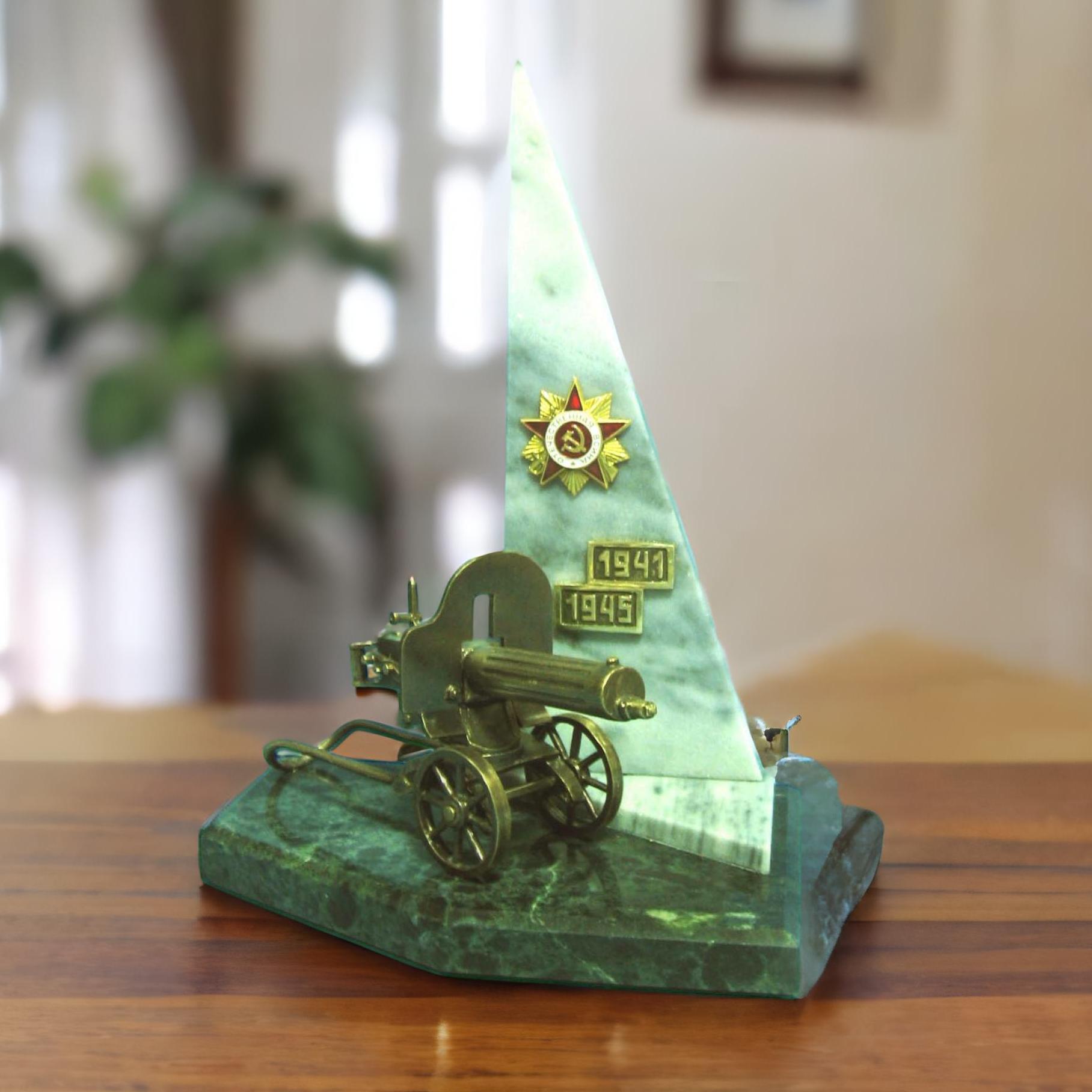 Áðîíçà — ìàòåðèàë, ïðî÷íûé è íåïîäâëàñòíûé âðåìåíè, òàêîé æå, êàê è äóõ íàøåãî íàðîäà, ñóìåâøåãî ñòîéêî âûäåðæàòü èñïûòàíèÿ Âåëèêîé Îòå÷åñòâåííîé âîéíû. Îðóæèå Ïîáåäû íå ÿâëÿåòñÿ èãðóøêîé èëè òðèâèàëüíîé ïîäåëêîé. Ýòî äåéñòâèòåëüíî öåííûé ñóâåíèð, ñèìâîëèçèðóþùèé ãåðîèçì è îòâàãó íàøèõ ïðåäêîâ, çàùèòèâøèõ Ðîäèíó. Îí ñòàíåò îòëè÷íûì äîïîëíåíèåì äëÿ âàøåé êîëëåêöèè èëè îñîáåííûì ïîäàðêîì äëÿ áëèçêîãî âàì ÷åëîâåêà.