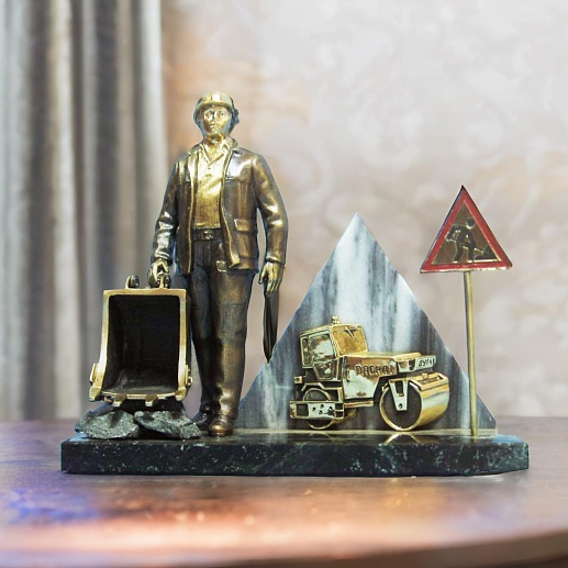 Âíèìàíèå âñåì ëþáèòåëÿì ýêñêëþçèâíûõ ñóâåíèðîâ è ïîêëîííèêàì äîðîæíûõ ðàáîò! Ìû ðàäû ïðåäëîæèòü âàì íå÷òî ñîâåðøåííî óíèêàëüíîå — áðîíçîâûé ñóâåíèð Ðàáîòíèê ÄÐÑÓ 2. Ýòîò íåèìîâåðíî äåòàëèçèðîâàííûé áðîíçîâûé ñóâåíèð äåìîíñòðèðóåò äîðîæíîãî ðàáî÷åãî, ãîðäî ñòîÿùåãî ðÿäîì ñ ìîùíûì êîâøîì ýêñêàâàòîðà íà ôîíå ðóëîííîãî äîðîæíîãî êàòêà è çíàêà äîðîæíûå ðàáîòû. Êàæäûé ìèëëèìåòð äàííîãî ïðîèçâåäåíèÿ èñêóññòâà òùàòåëüíî ïðîäóìàí, ÷òîáû ïåðåäàòü âñå òðóäîâûå áóäíè è ãîðäîñòü äîðîæíîãî ðàáîòíèêà.