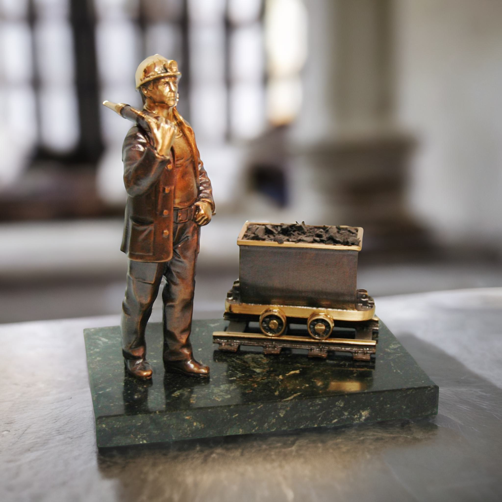 Îðèãèíàëüíûé ïîäàðîê äëÿ íàñòîÿùèõ òðóæåíèêîâ ïîäçåìåëüÿ — áðîíçîâûé ñóâåíèð Øàõòåðó â ïîäàðîê. Ýòà óíèêàëüíàÿ ìèíèàòþðà ïðîèçâåäåíà âðó÷íóþ è âîïëîùàåò â ñåáå ãåðîè÷åñêèé îáðàç øàõòåðà. Íà ñóâåíèðå èçîáðàæåí øàõòåð ñ îòáîéíûì ìîëîòêîì, êîòîðûé ñòîèò ðÿäîì ñ âàãîíåòêîé, ïîëíîé ïîðîäû. Ýòî ñèìâîëèçèðóåò òèòàíè÷åñêèé òðóä øàõòåðîâ, êîòîðûå êàæäûé äåíü ñîâåðøàþò ïîäçåìíûé ñïóñê, ÷òîáû äîáûòü öåííûå èñêîïàåìûå.