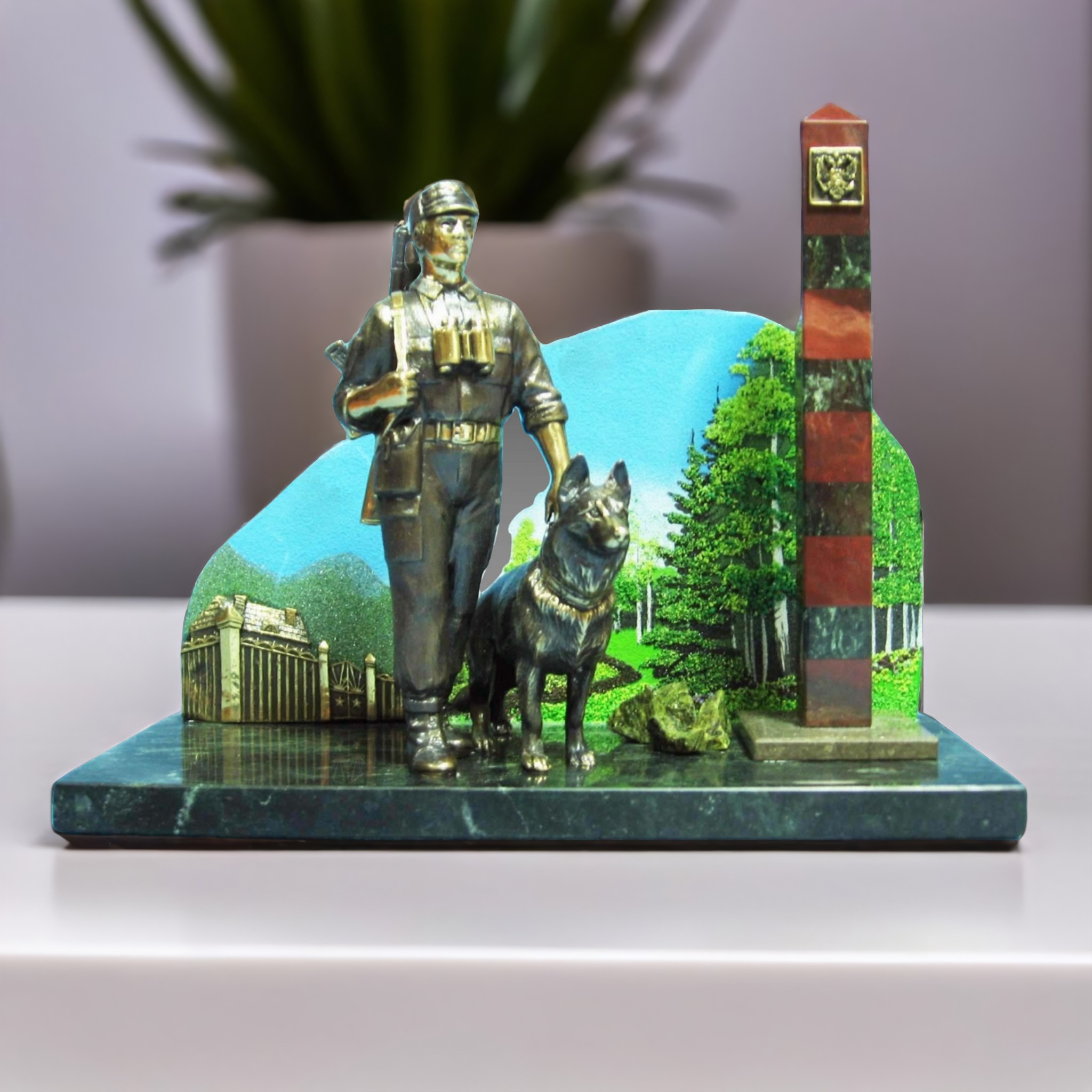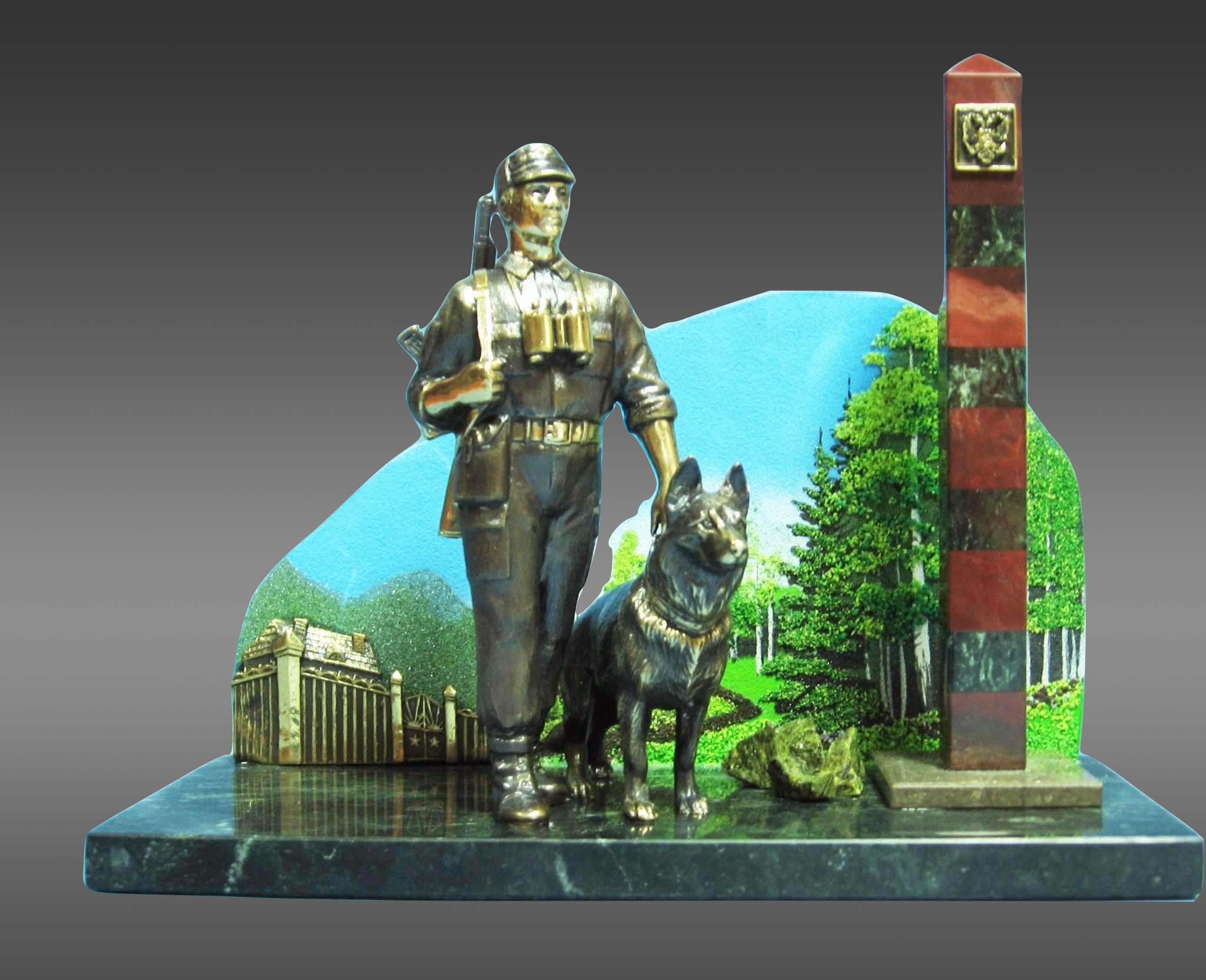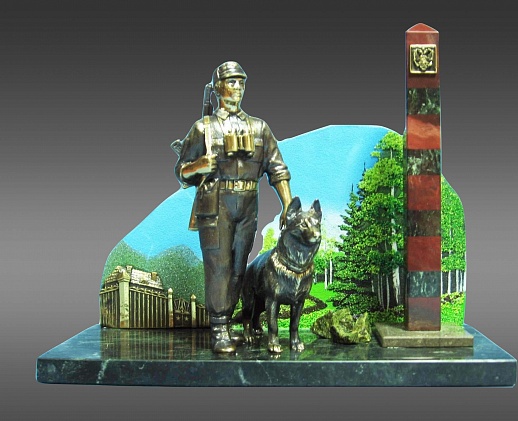 Ñóùåñòâóåò ìíîæåñòâî ñïîñîáîâ ïîä÷åðêíóòü ñâîþ ïðèâÿçàííîñòü ê Ðîäèíå, îäíèì èç íèõ ÿâëÿåòñÿ íàø óíèêàëüíûé áðîíçîâûé ñóâåíèð Çàñòàâà. Ìàñòåðñêèé îáðàçåö èñêóññòâà, êîòîðûé îëèöåòâîðÿåò âåëè÷èå è ðåøèìîñòü ïðîòåêòîðîâ íàøåé ñòðàíû. Âûñîêîêà÷åñòâåííàÿ áðîíçà è ìàñòåðñêè èñïîëíåííûå äåòàëè ïåðåäàþò îáëèê ðîññèéñêîãî ïîãðàíè÷íèêà ñ âåðíîé ñîáàêîé, ðÿäîì ñ êîòîðûìè ãîðäî âîçâûøàåòñÿ ïîãðàíè÷íûé ñòîëá.