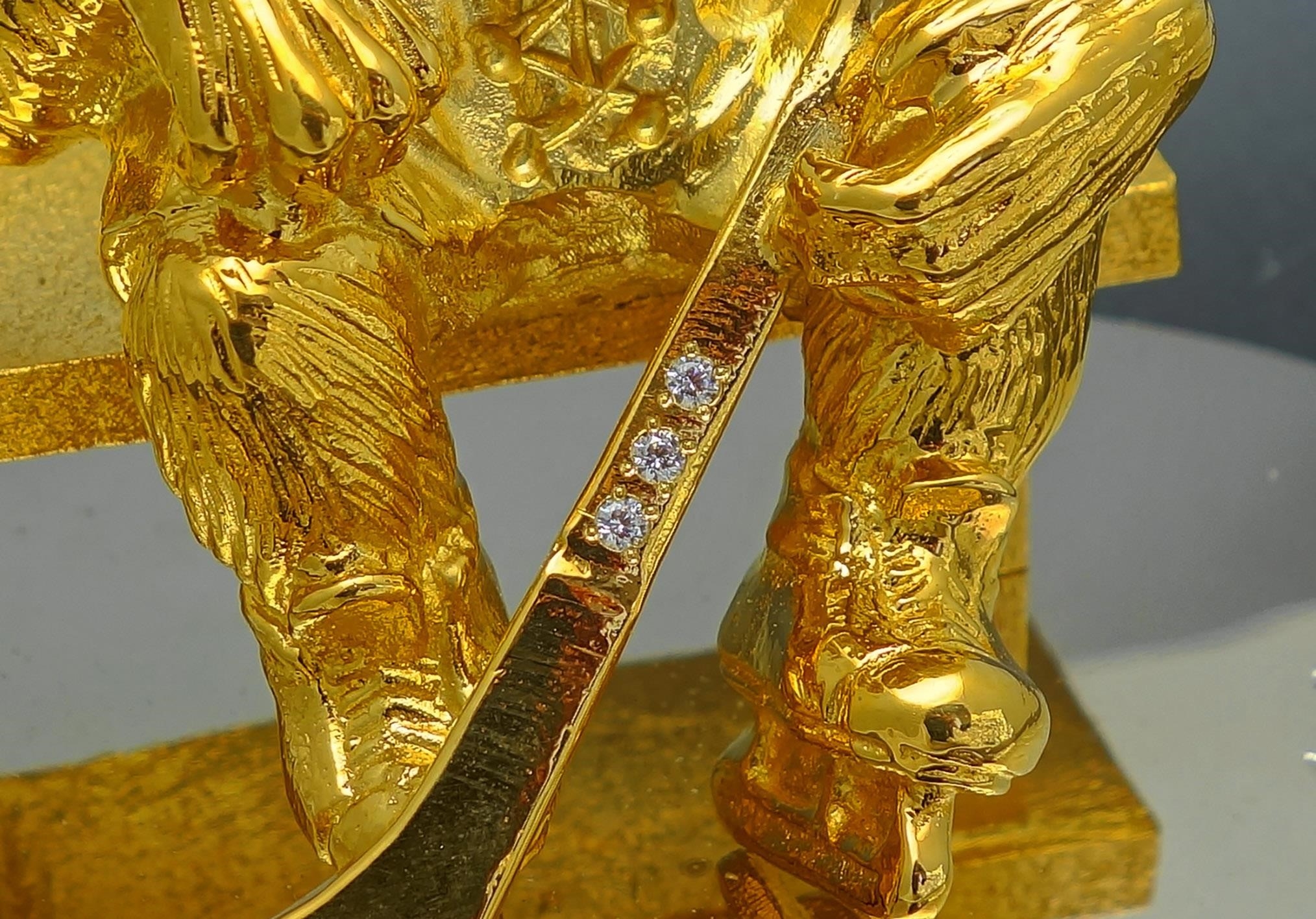 Ñóâåíèðíàÿ ñòàòóýòêà "Íèêîãäà íå ñäàâàéñÿ" - ýòî âîïëîùåíèå óïîðñòâà è ñòðåìëåíèÿ ê ïîáåäå. Èçãîòîâëåííàÿ èç áðîíçû è ïîêðûòàÿ çîëîòîì è íèêåëåì, ýòà ñòàòóýòêà èìååò ðàçìåðû 120x90 ìì è âûñîòó 80 ìì. Ïðîöåññ ñîçäàíèÿ âêëþ÷àåò â ñåáÿ òîêàðíûå è ñëåñàðíûå ðàáîòû, òðàâëåíèå, ãðàâèðîâêó, íèêåëèðîâàíèå, çîëî÷åíèå, þâåëèðíûå ðàáîòû è õóäîæåñòâåííîå ëèòüå. Ýòî ïðåêðàñíûé ïîäàðîê äëÿ ñïîðòñìåíîâ, òðåíåðîâ èëè ëþáîãî, êòî öåíèò óïîðñòâî è ñòðåìëåíèå ê ïîáåäå. |