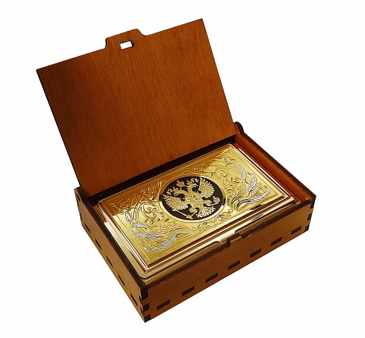 Èçäåëèå «Ðóññêèé ìåäâåäü» ïðåäñòàâëÿåò ñîáîé ýêñêëþçèâíóþ ñòàëüíóþ âèçèòíèöó â ïîäàðî÷íîì ôóòëÿðå. Îíà èçãîòîâëåíà èç ëàòóíè è îáðàáîòàíà ïî òðàäèöèîííîé çëàòîóñòîâñêîé ìåòîäèêå ãðàâèðîâàíèÿ ñ íàíåñåíèåì çîëî÷åíèÿ è íèêåëèðîâàíèÿ. Ãðàâþðà, èçîáðàæàþùàÿ îáùåèçâåñòíûé ðóññêèé ìîòèâ, âûïîëíåíà ìàñòåðîì âðó÷íóþ, ïîýòîìó èçäåëèå ÿâëÿåòñÿ óíèêàëüíûì àâòîðñêèì ïðîèçâåäåíèåì. Òàêàÿ âèçèòíèöà ñìîæåò ñòàòü îòëè÷íûì ïîäàðêîì êîëëåãå ïî ðàáîòå èëè ïîäõîäÿùèì ñóâåíèðîì çà ãðàíèöó. |