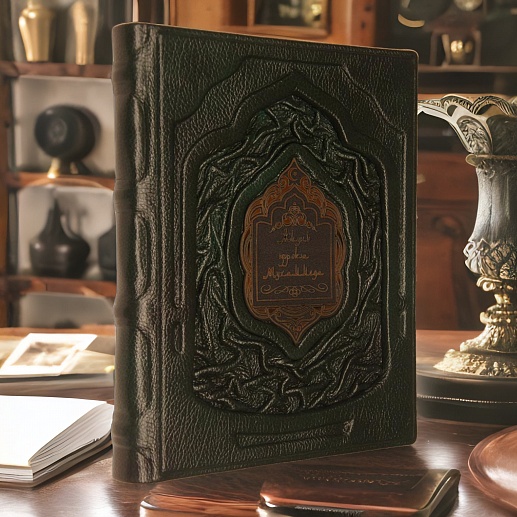 Ïîäàðî÷íîå èçäàíèå èç íàòóðàëüíîé òåëÿ÷üåé êîæè òåìíî çåëåíîãî öâåòà, îñîáîé âûäåëêè, ñ õóäîæåñòâåííûì òèñíåíèåì îñîáîãî òèïà, ïðèâëåêàåò âíèìàíèå äîñòîéíûì îôîðìëåíèåì, â ìóñóëüìàíñêèõ òðàäèöèÿõ. Èçãîòîâëåííàÿ âðó÷íóþ íàøèìè ïðîôåññèîíàëüíûìè ìàñòåðàìè, öåííûé è âñåãäà óìåñòíûé ïîäàðîê. Öâåòîâàÿ ãàììà òùàòåëüíî ïîäîáðàíà, ôàêòóðà êîæè ïðèÿòíà íà îùóïü è ñîçäàåò îùóùåíèå áåñöåííîãî ïîäàðêà.